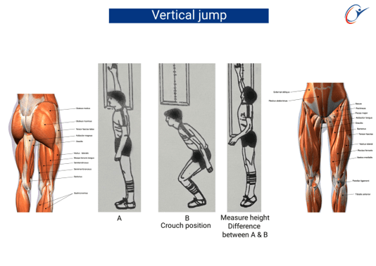 Vertical jump, Standing broad jump, Forty metre dash